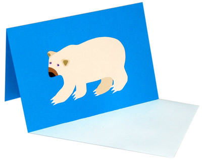 Top to Bottom: Polar Bear, Black Bear, Cinnamon Bear, Brown Bear, Glacier Bear & Grizzly Bear Handmade greeting cards. Made with cut paper & archival bookbinding glue. Blank inside, and politely packaged. Paired with a matching, self-sealing envelope and a small, informative insert. © Colleen Rochette, 2006 - 2009 |